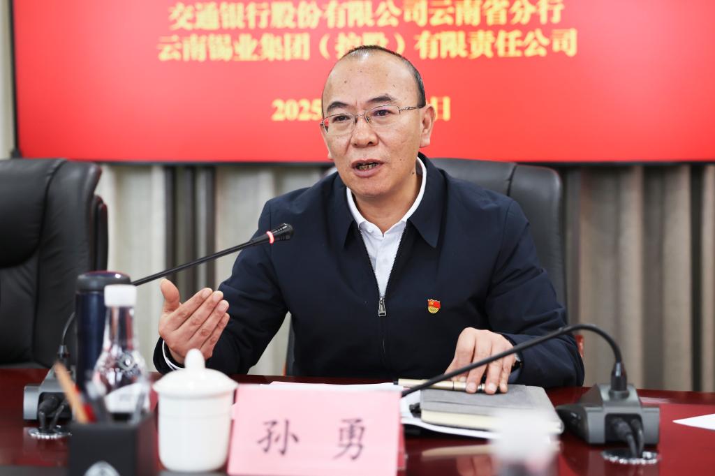 孙勇对中国人民银行云南省分行、国家外汇管理局云南省分局和交通银行云南省分行长期以来的支持表示感谢,他谈到,锡作为不可或缺的战略金属,具有“无处不在、无可替代”的特性。云锡作为全球锡铟行业双龙头企业,坚持“三个一致”推动党建引领高质量发展,围绕主业优化构建“4+2”产业布局,聚焦科技创新主线,持续加大研发投入,通过深化改革激发内生动力,奋力做强“两个全球最优”、创建锡铟行业世界一流企业。下一步,云锡将聚焦资源保障、管理提升、数字化转型、科技创新、材料领先、人才保障等新一轮“三年促跨越”六大专项行动,加快建设世界一流企业,期待政银各方继续为云锡国际化发展提供有力支持。