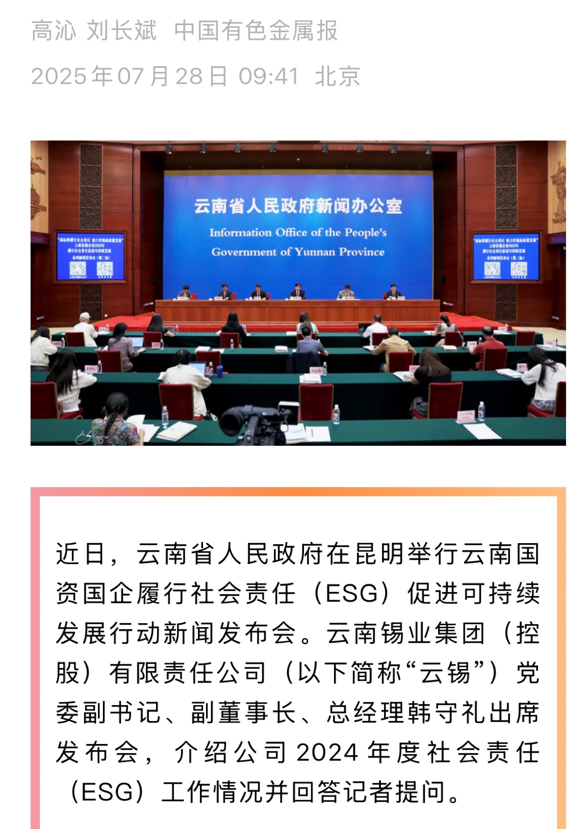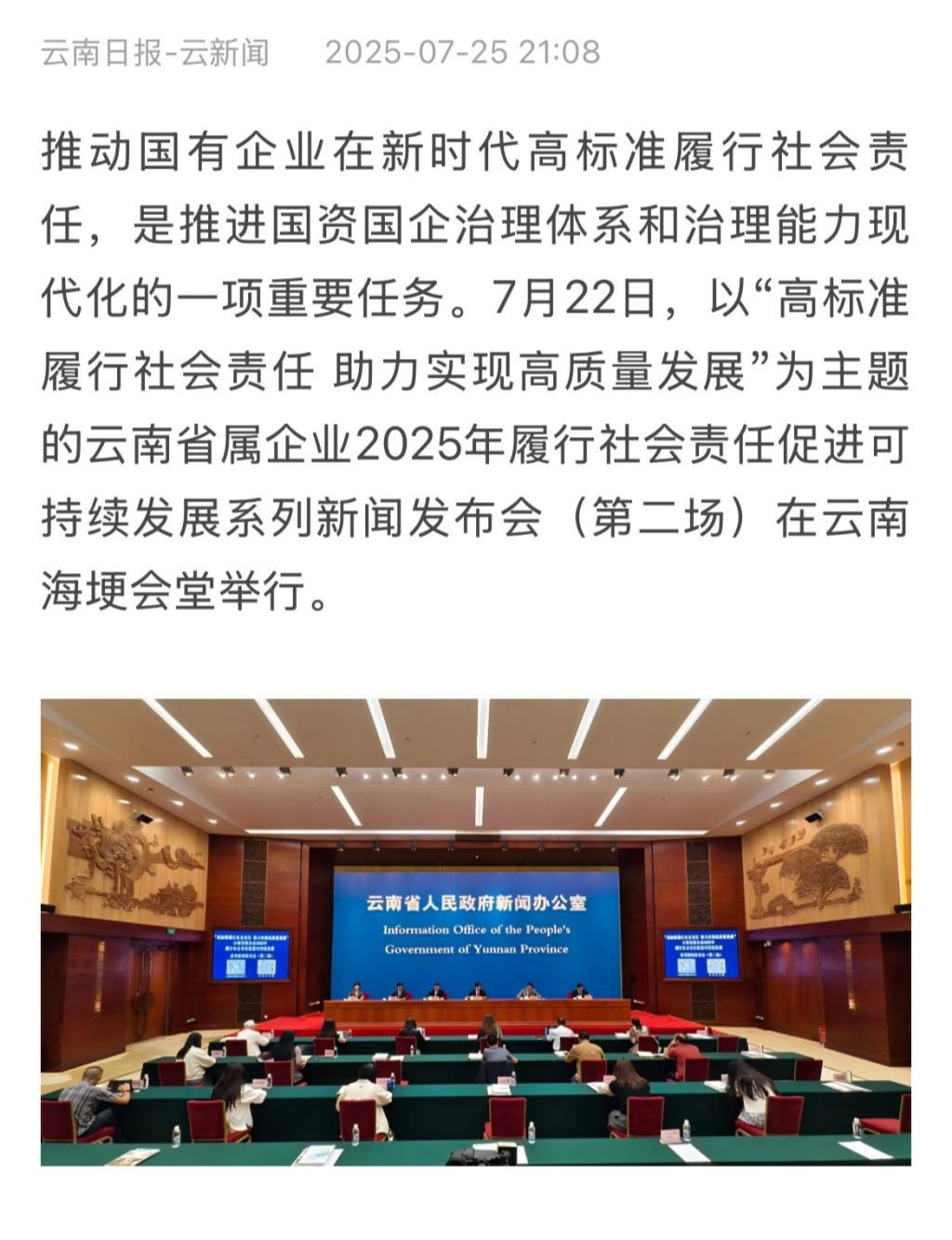 来源:央广网、央视影音、新华网、新华时讯、中国日报网、中国新闻网、中国网云南新闻联播、云南卫视晚间新闻、云南发布、云南日报、云南日报-云新闻、云南网、七彩云端、云南省人民政府、云岭先锋网、云南国资、云南政协报、有色金属报、有色新闻、腾讯新闻、今日头条、搜狐、网易、新浪微博、新浪财经、都市时报、国泰君安、昆明日报、春城晚报、昆明信息港、开屏新闻