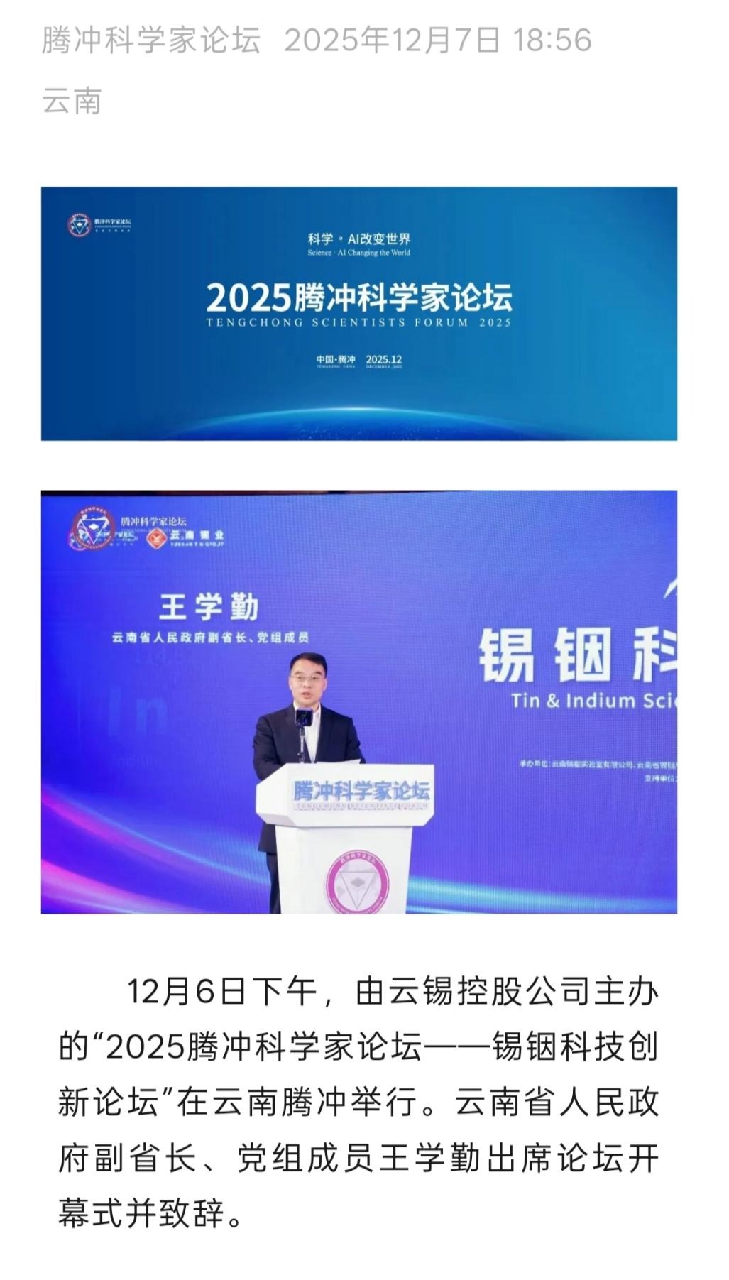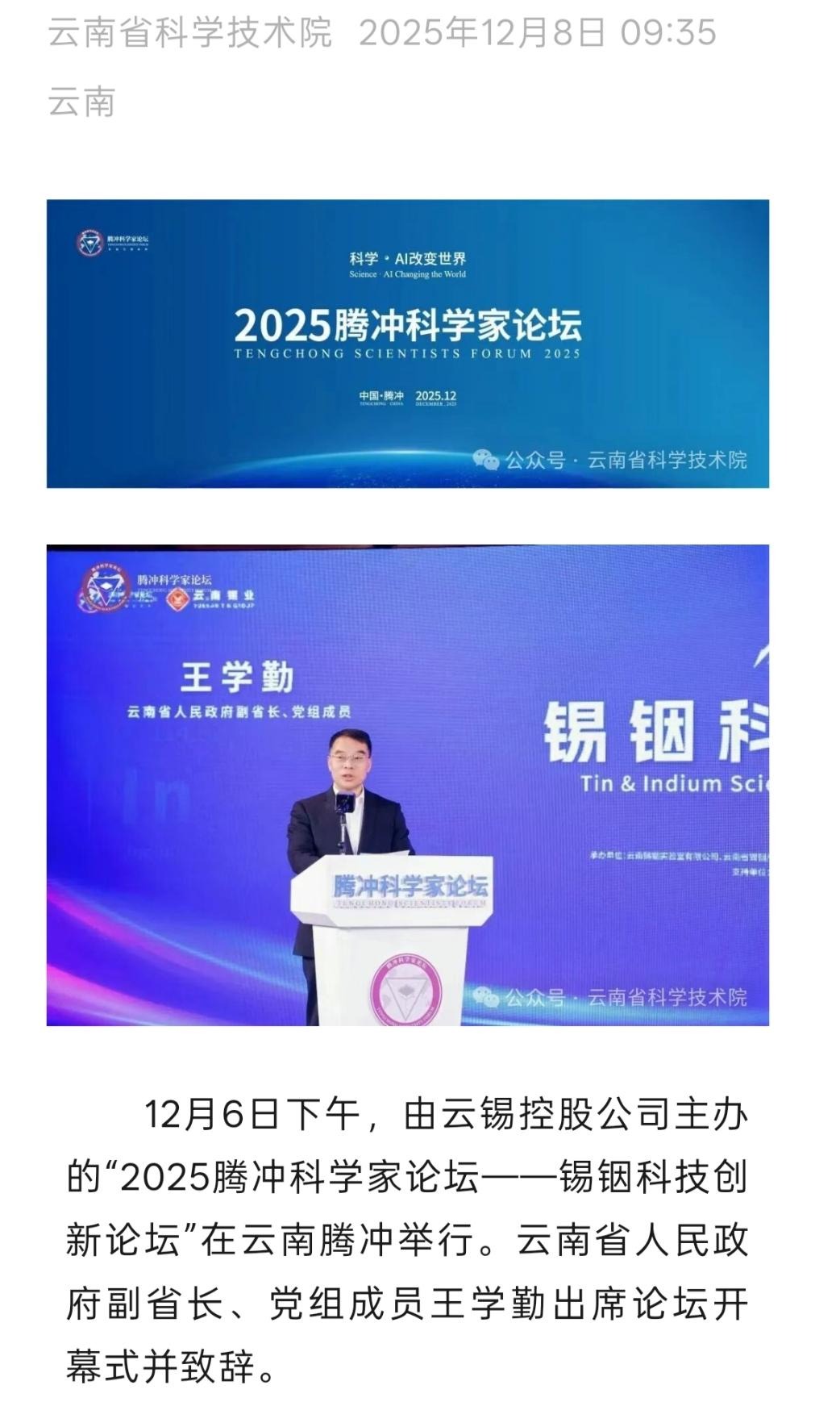 来源:云南日报、云南省科学技术院、腾冲发布、腾冲科学家论坛、IntelMining智能矿业、科技彩云南