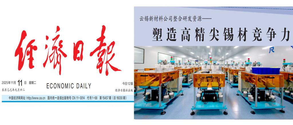 经济日报:云锡新材料公司整合研发资源——塑造高精尖锡材竞争力