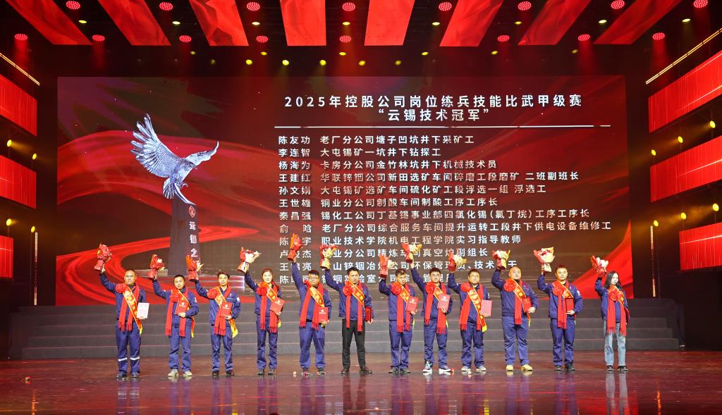 2025年控股公司岗位练兵技能比武甲级赛“云锡技术冠军”合影。