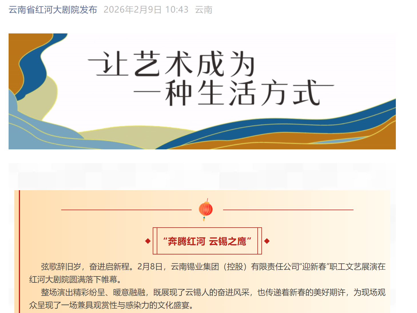 来源:红河日报、云岭职工、红河发布、红河州总工会、云南省红河大剧院发布
