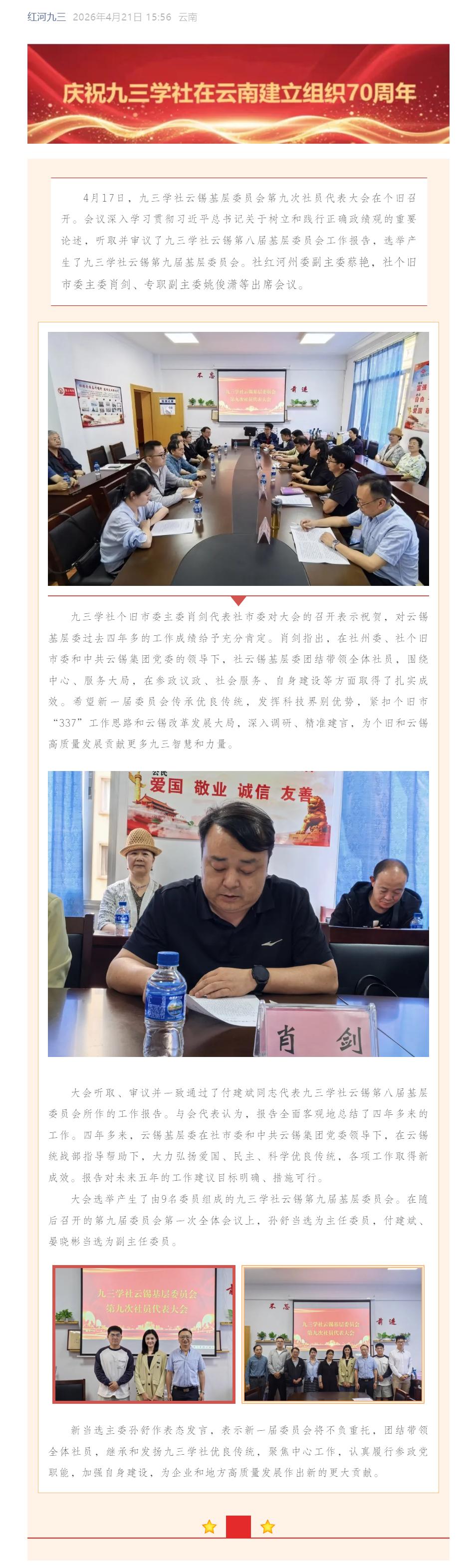 红河九三:九三学社云锡基层委员会第九次社员代表大会召开