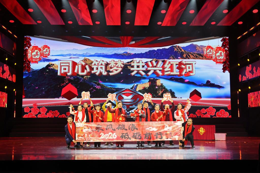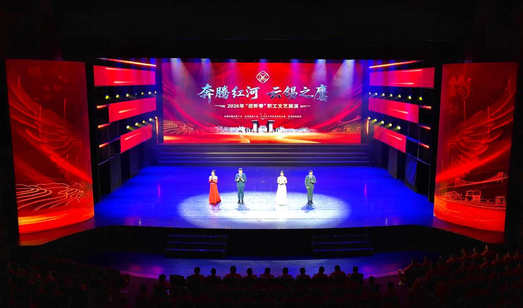 奔腾红河潮涌不息,云锡之鹰志存高远。2月8日晚,由云锡控股公司工会和红河州总工会联合州文联、州歌舞团共同举办的“奔腾红河·云锡之鹰”2026年云锡“迎新春”职工文艺展演在蒙自市红河大剧院隆重举行,以文艺为桥、以团结为翼,彰显政企共兴、民族团结、产业繁荣的时代气象。