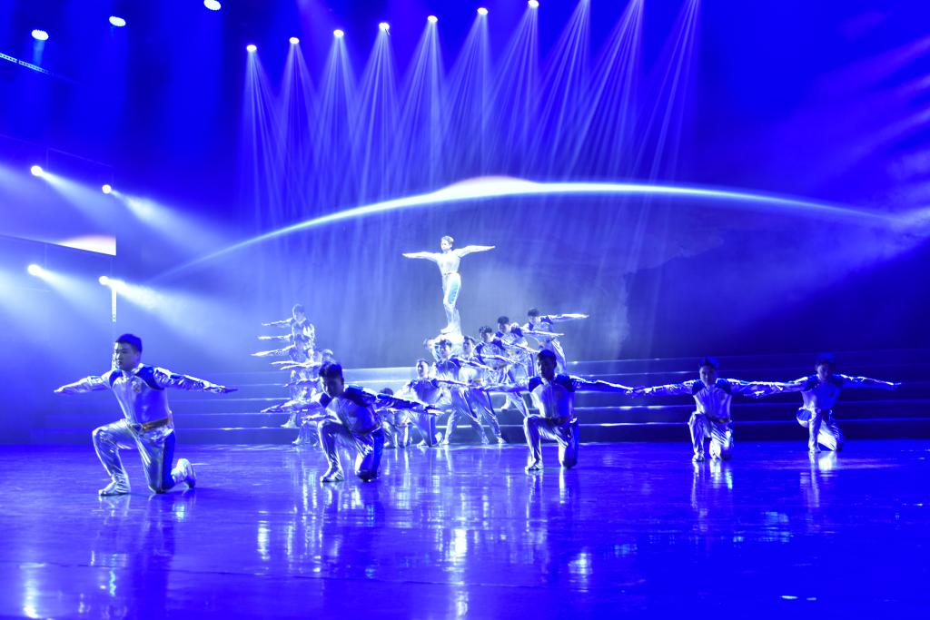 男子群舞《云锡之鹰》气势恢宏,象征着云锡人锐意进取、志存高远的精神风貌。