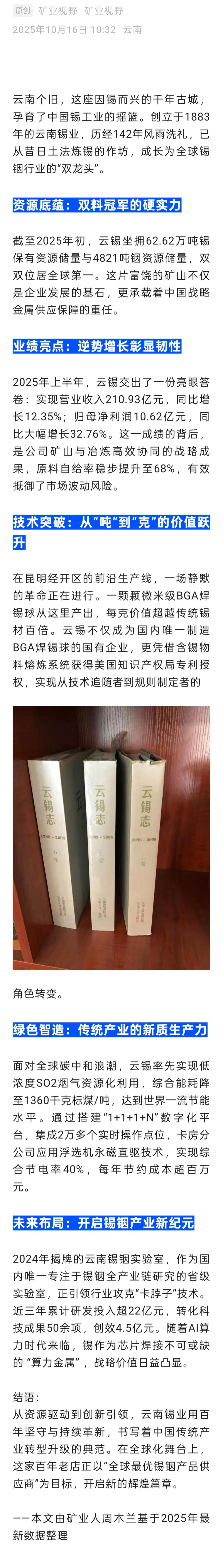 矿业视野:云南锡业——全球锡铟巨头的革新之路与2025新篇章