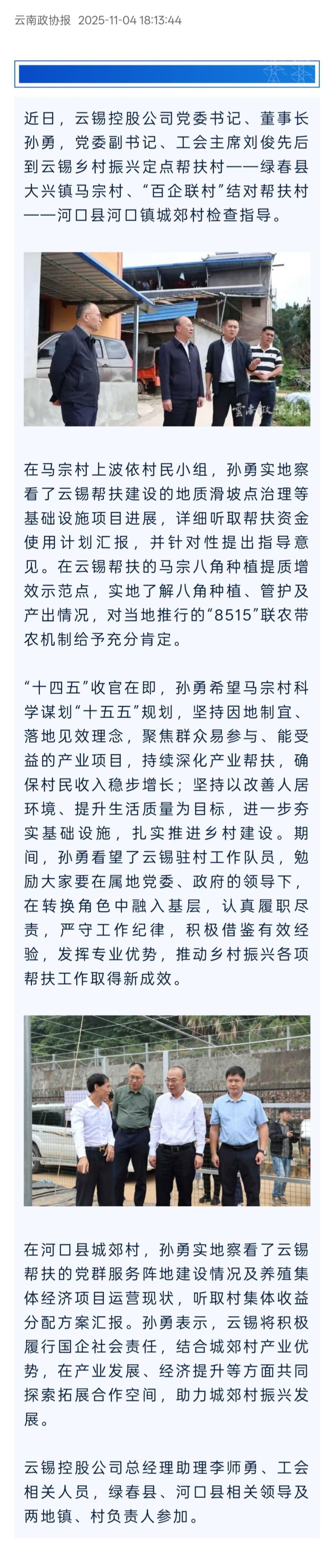 云南政协报:云锡到乡村振兴定点帮扶村及“百企联村”结对帮扶村检查指导
