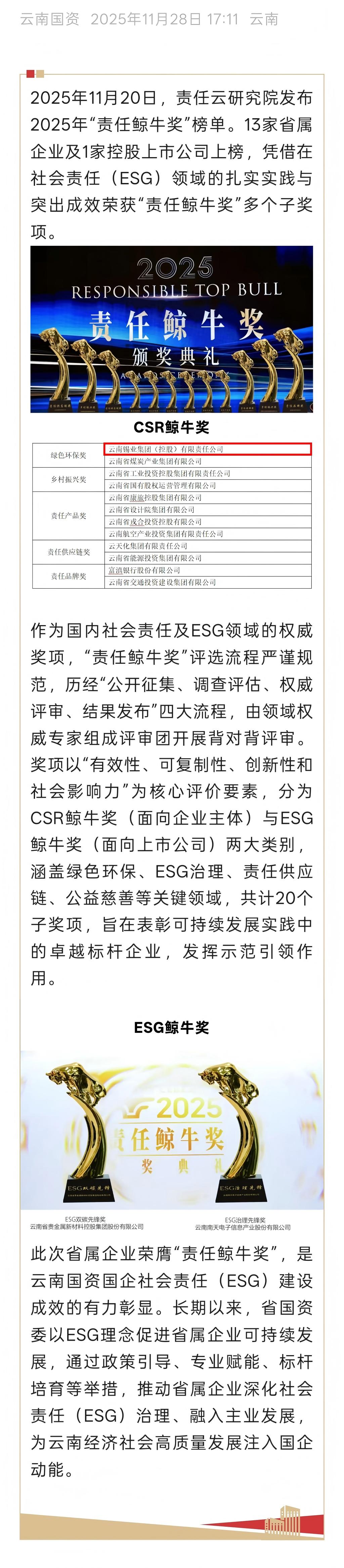 云南国资:厚植责任底色 彰显国企担当 省属企业可持续发展再获殊荣
