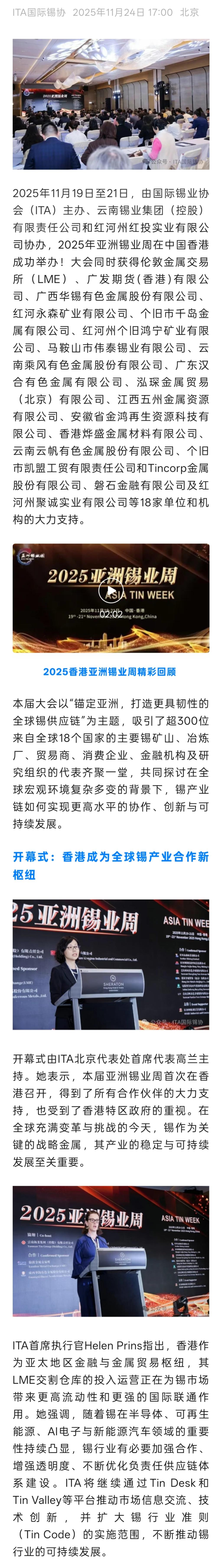 ITA国际锡协:2025亚洲锡业周在香港成功召开