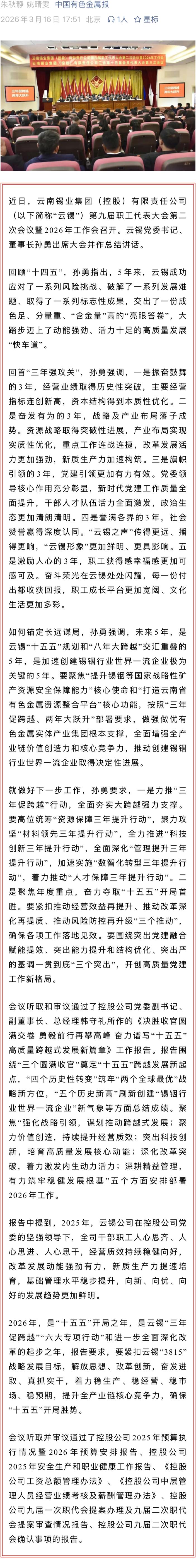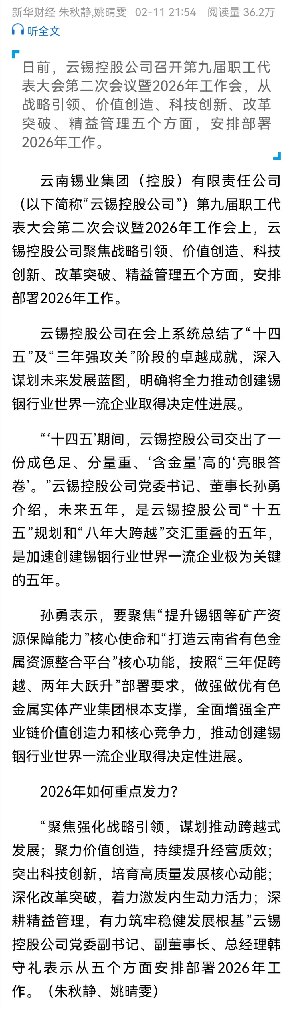 新华财经:云锡控股聚焦“五个方面”,向远而谋