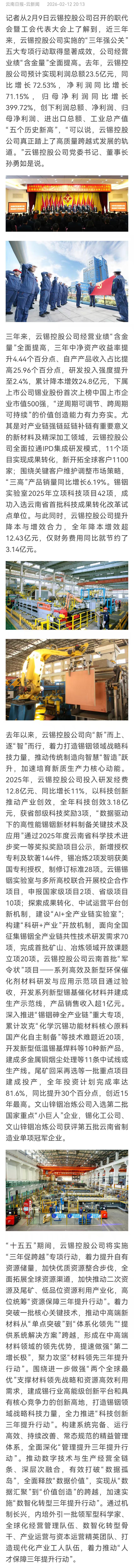 云南日报-云新闻:生产经营创历史新高 云锡控股踏上高质量跨越式发展轨道