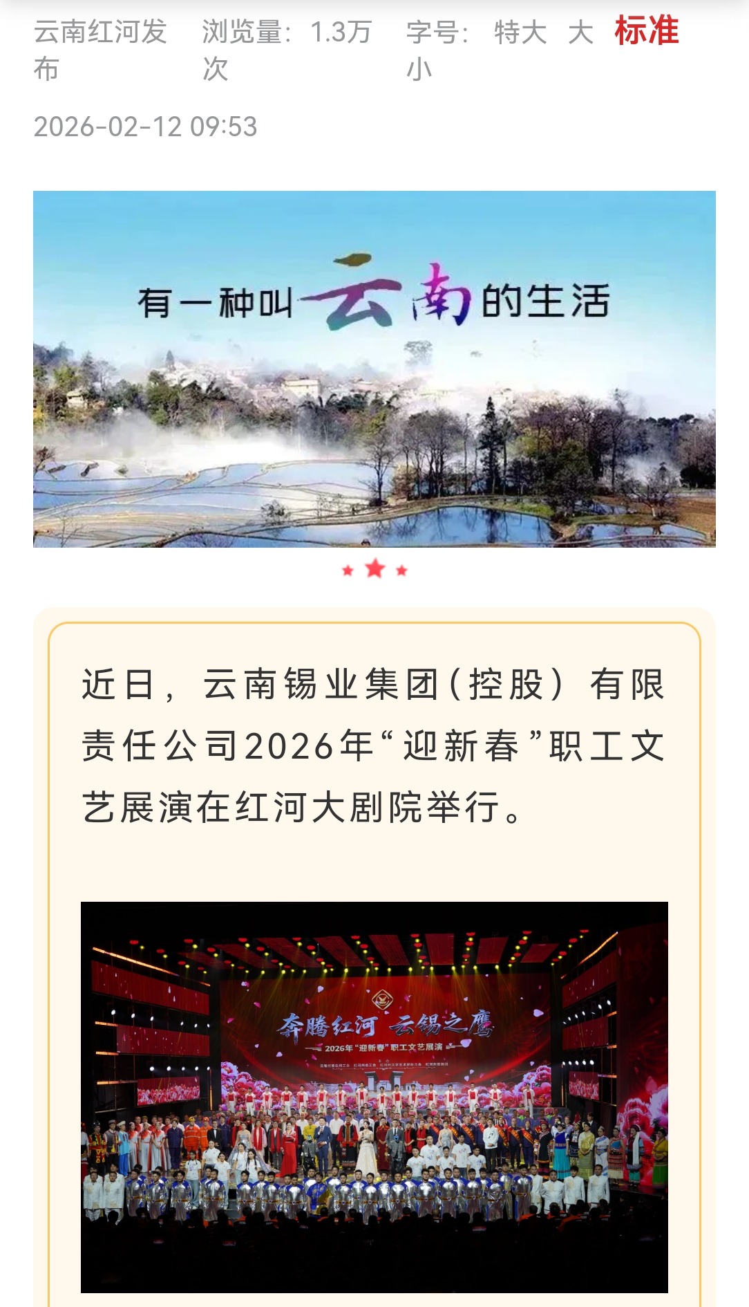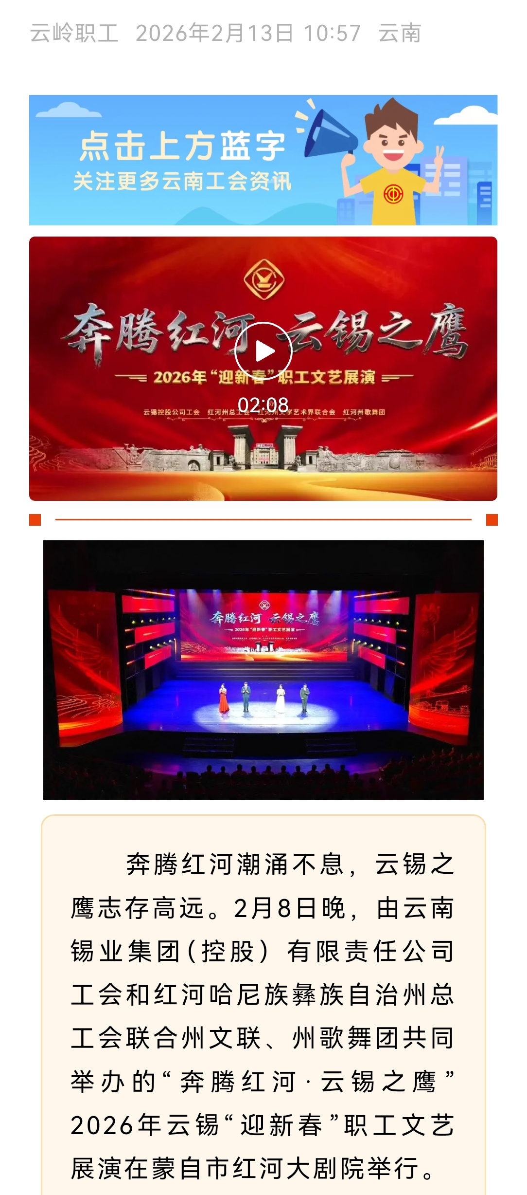 链接:(红河日报)、(云岭职工)、(红河发布)、(红河州总工会)、(云南省红河大剧院发布)