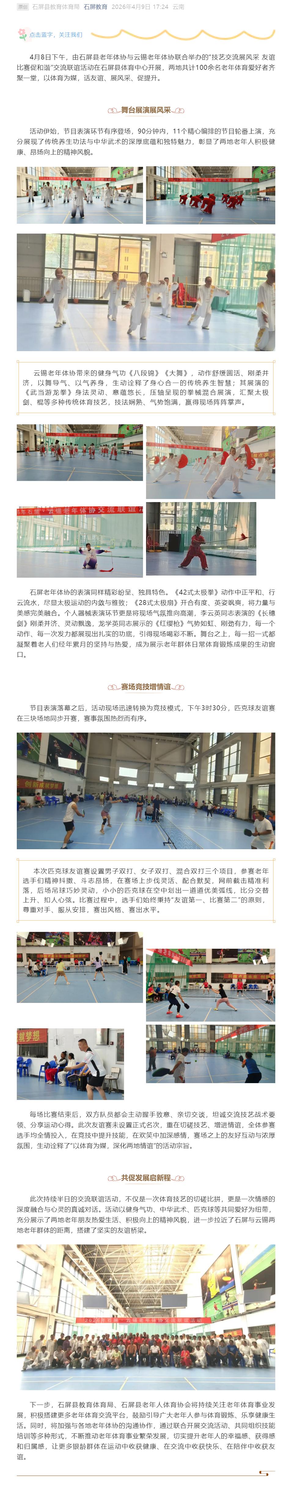 石屏教育:以赛会友 以艺传情——石屏·云锡老年体协交流活动展银龄风采